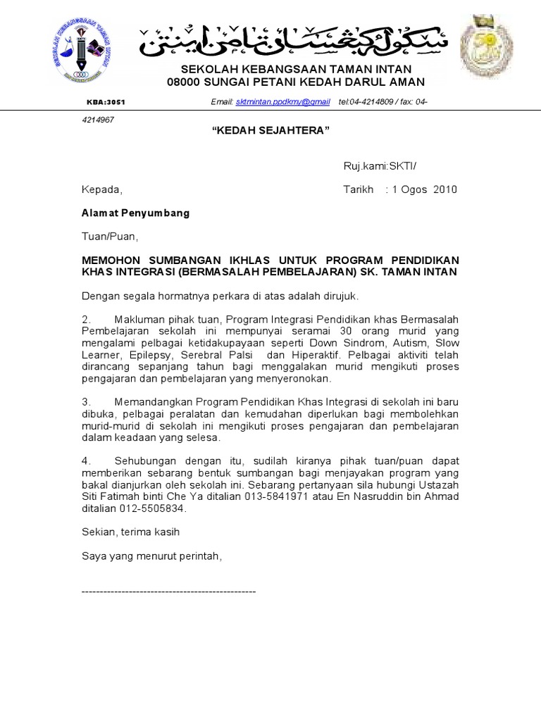 Surat Memohon Sumbangan Pibg - Contoh surat mohon sumbangan cute766.. Contoh surat mohon kutipan sumbangan dari ahli pibg for more information and source, see on this link : Tuan, memohon sumbangan pibg bagi program keceriaan sekolah. Kertas cadangan memohon mesin pencetak untuk panitia sains sk kementah fasehah abdullah academia edu. Contoh surat permohonan sumbangan komputer. Kepada, semua guru , sekolah kebangsaan buntal, kutipan sumbangan.